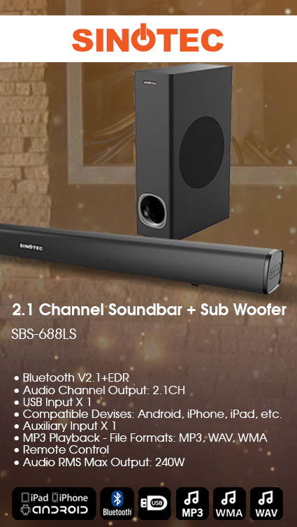 Powerful music wirelessly! Stream music wirelessly over Bluetooth® from any smart device. A dual amplifier offers better sound quality and 230W RMS total output power gives music a solid punch